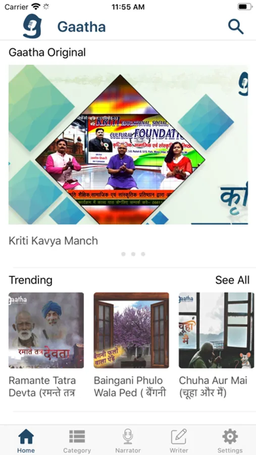 Gaatha - an audio platform to enjoy various genres of Indian literature in various sections of stories, poetries, kid's stories, spiritual, motivational stories in a uniquely engaging and interesting way.