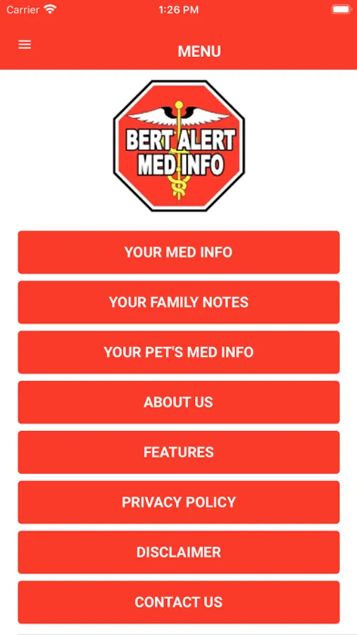 The Bert Alert Med Info App is the only platform to store your med info and those of your pets and family notes on your mobile devices such as names, birthdates, medications, allergies, vaccinations, and the contact numbers of friends, doctors and/or veterinarians. When needed, that vital information may be used by medical personnel or recalled for medical appointments. At home or traveling your med info is private and does not require a network connection and it is accessible on your mobile devices anytime worldwide.