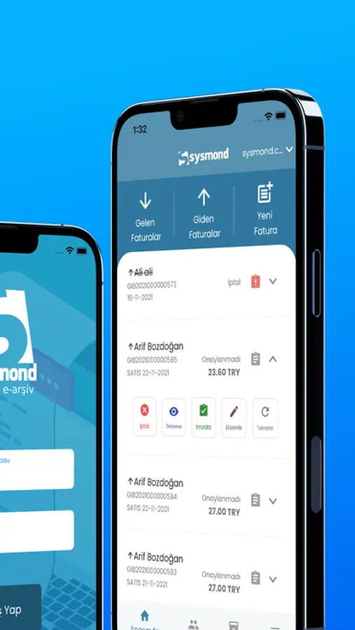 == Sysmond E-Arşiv fatura uygulaması ile aşağıdaki işlemleri yapabilirsiniz.==