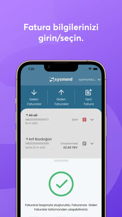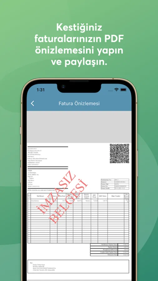 5.000-30.000 TL arası faturalarınızı oluşturarak E-Arşiv portalına gönderebileceğiniz tam entegre mobil uygulamadır.