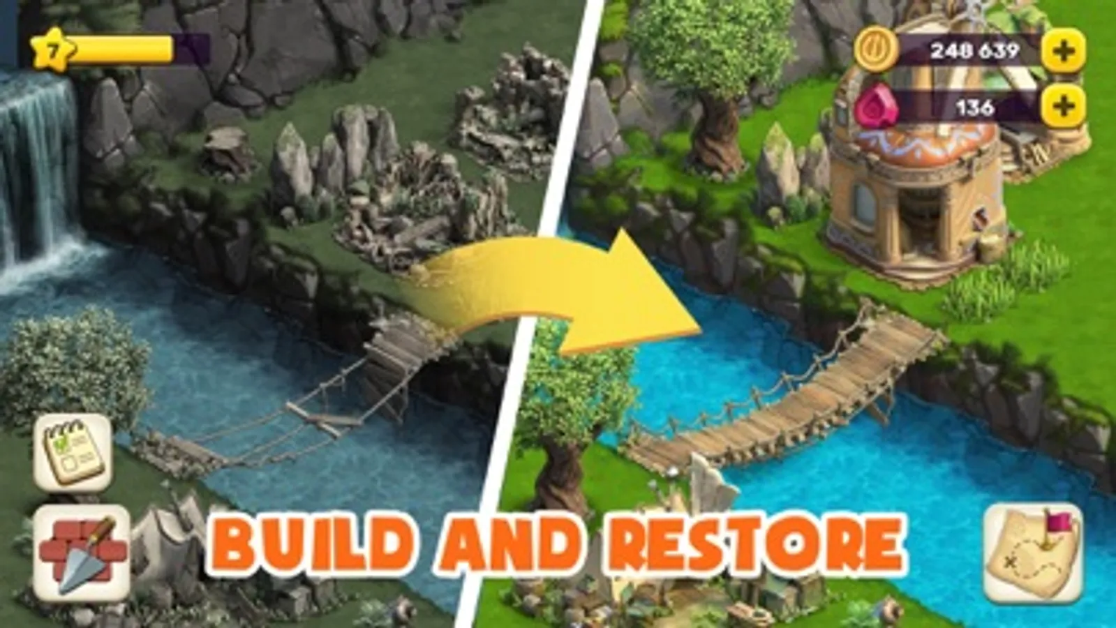 - This area is packed with mysterious ruins! Restore Atlanteans’ magic workshops with the help of powerful crystals!