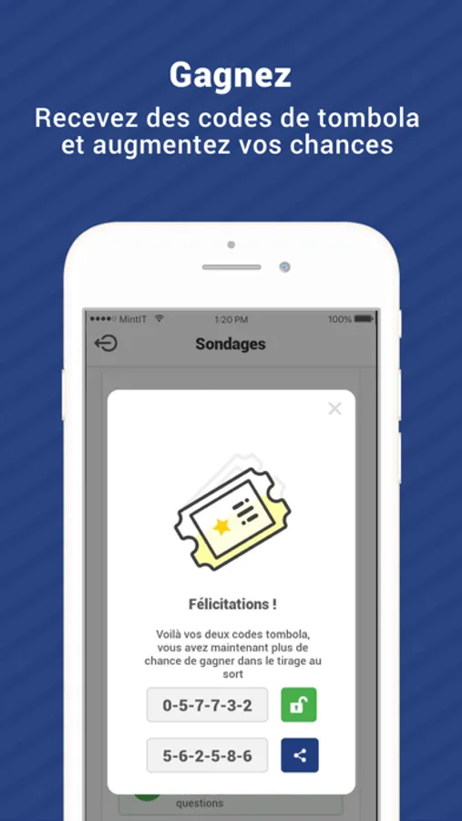 3. Obtenez un premier ticket de Tombola après avoir débloquer toutes les catégories. Multipliez vos chances par deux et gagnez un second en partageant vos résultats sur les réseaux sociaux . Vous pouvez faire la même chose avec Elu Produit de l'Année Tunisie