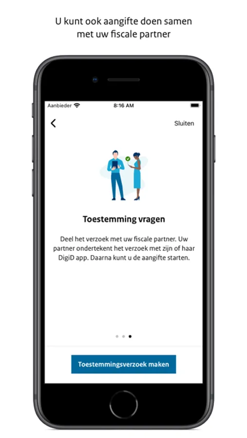 Doet u aangifte met een fiscale partner? Dan heeft uw partner ook de DigiD app nodig op zijn of haar eigen apparaat.