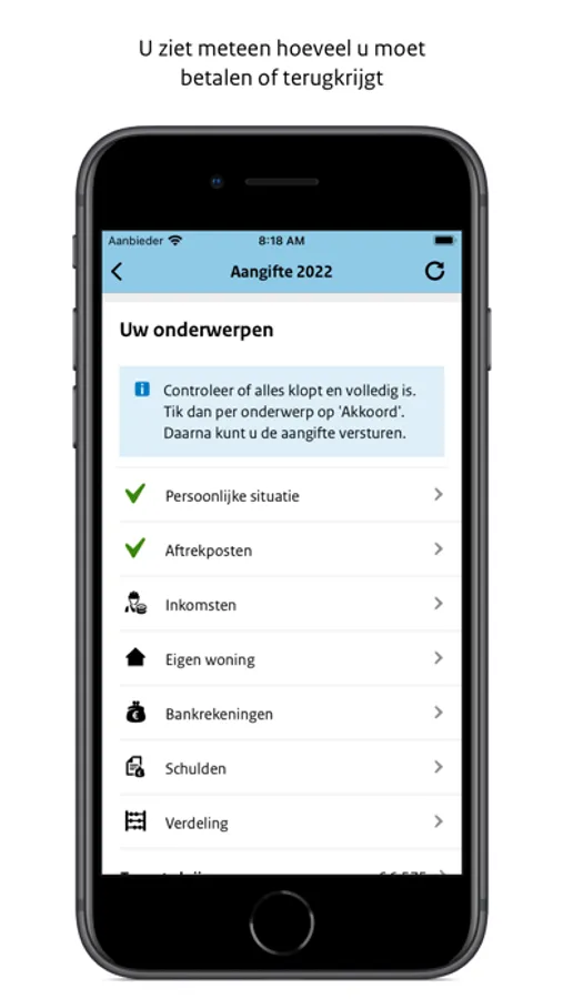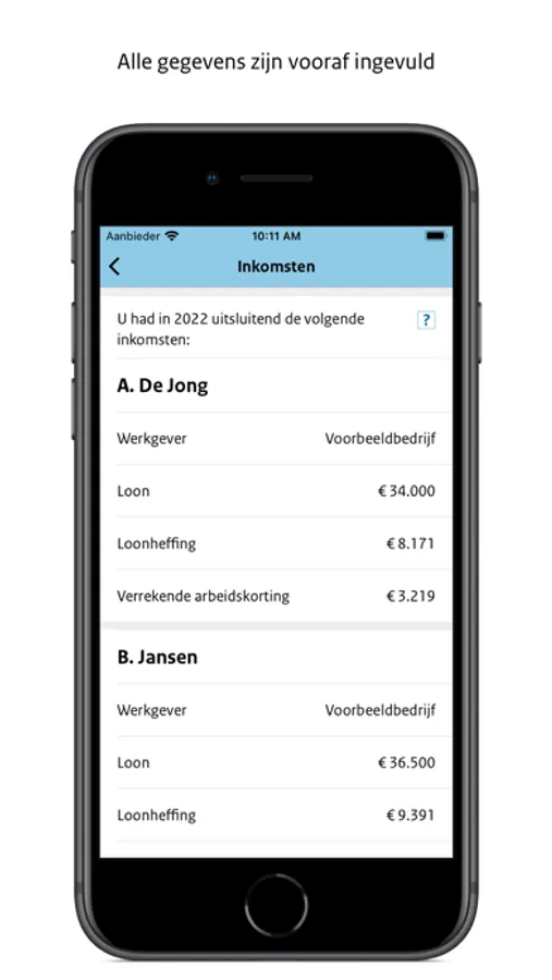 Met de aangifte-app kunt u uw aangifte inkomstenbelasting 2022 doen.
