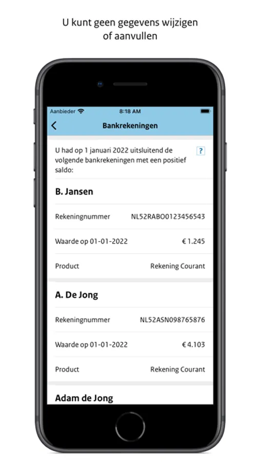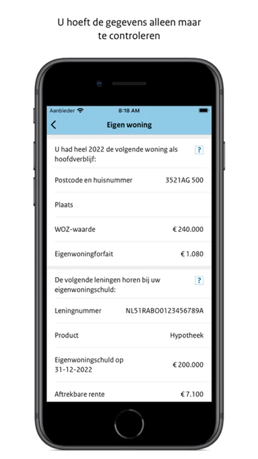 Kunt u de app niet gebruiken? Vul dan onze online aangifte in. Kijk voor meer informatie of om direct aangifte te doen op belastingdienst.nl/aangifte.