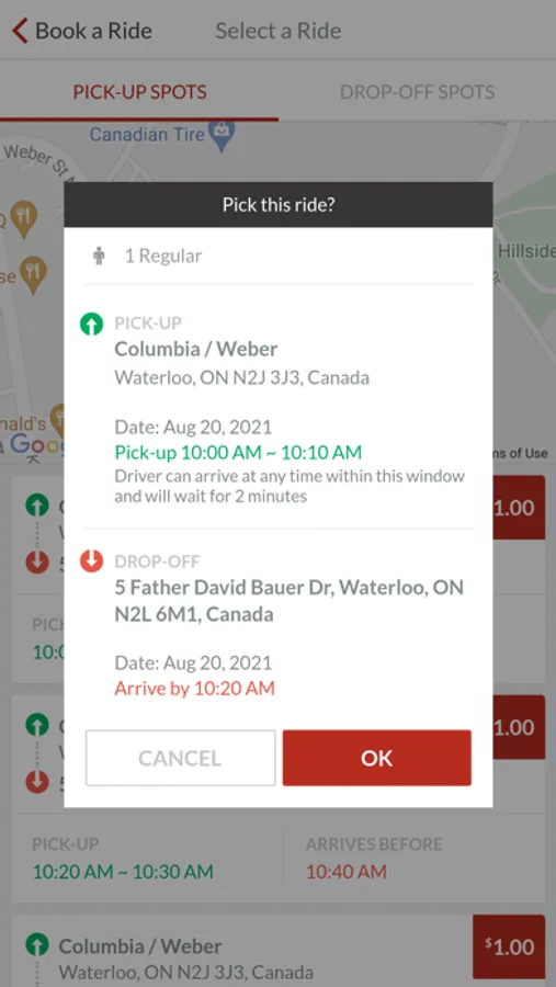D.O.T. lets you book rides quickly and easily between important sites for Syncrude riders.