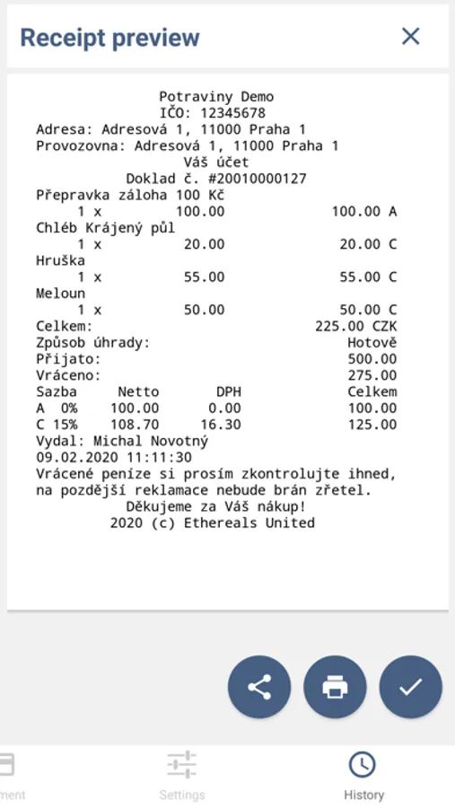 Gokasa Lite is a lightweight mobile version of the Point of Sale system Gokasa.cz. It is used as a mobile POS application, allowing users to register fiscal transactions of services and goods. It provides all standard functionalities for sale, checkout, sharing & printing receipts and EET integration.