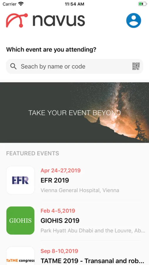 Access events on the Navus app and use all other Navus platform services via one single account.