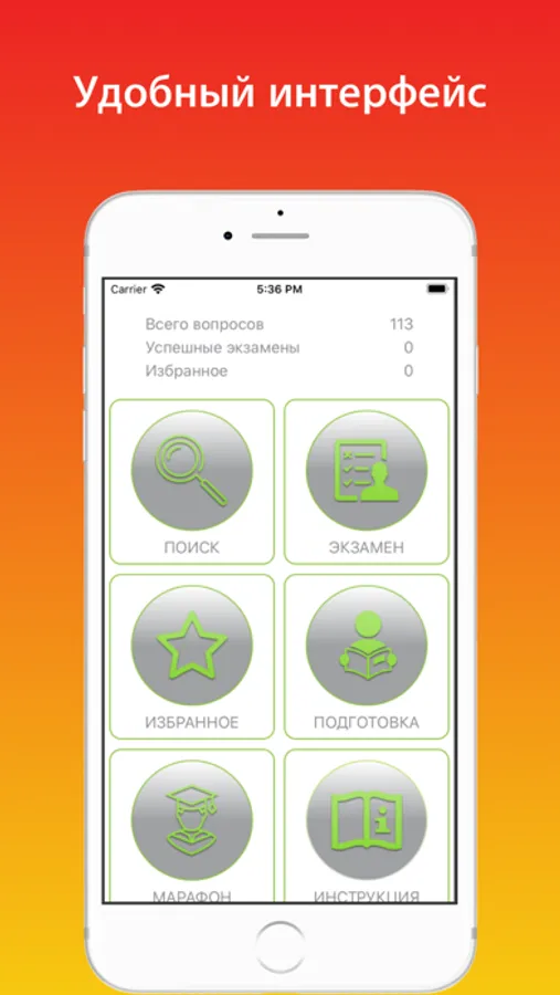 • Подготовка - Позволяет изучить вопросы в текстовом формате с отмеченными правильными ответами;