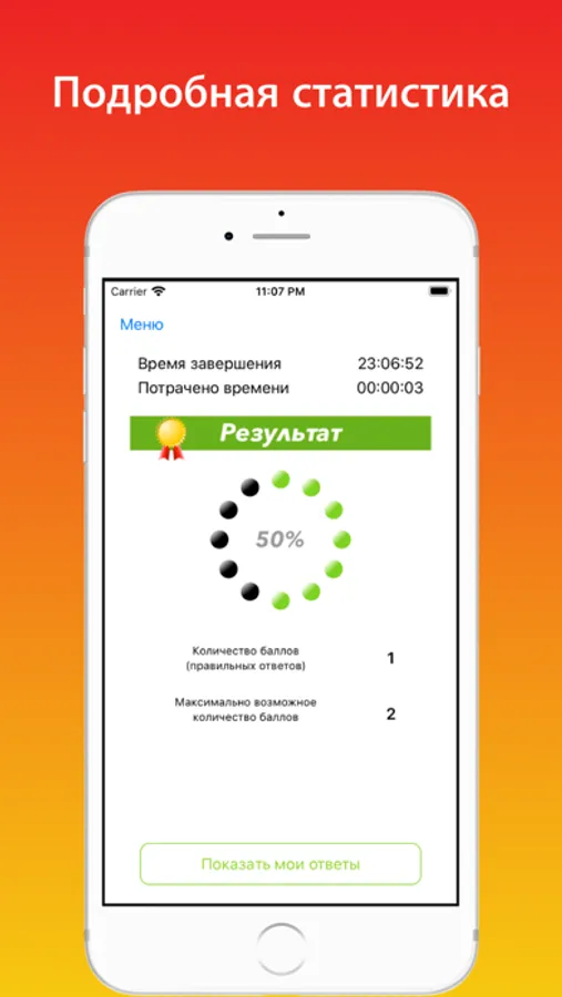 • Работа над ошибками - в режимах "Экзамен", "Марафон" и "Тренировка в избранном" Вы можете сделать работу над ошибками.