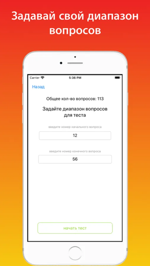 • Марафон - Предлагается ответить на все вопросы с возможностью выбора вопросов или же все вопросы, без ограничения по времени и ошибкам;