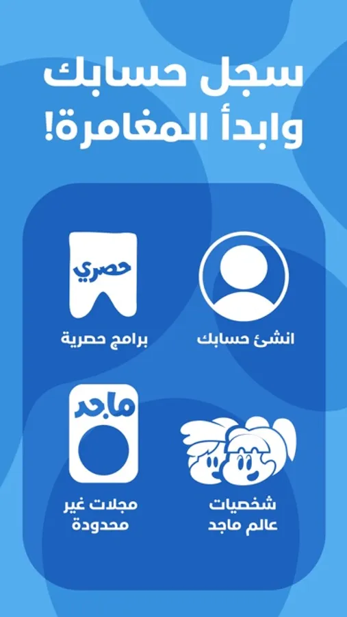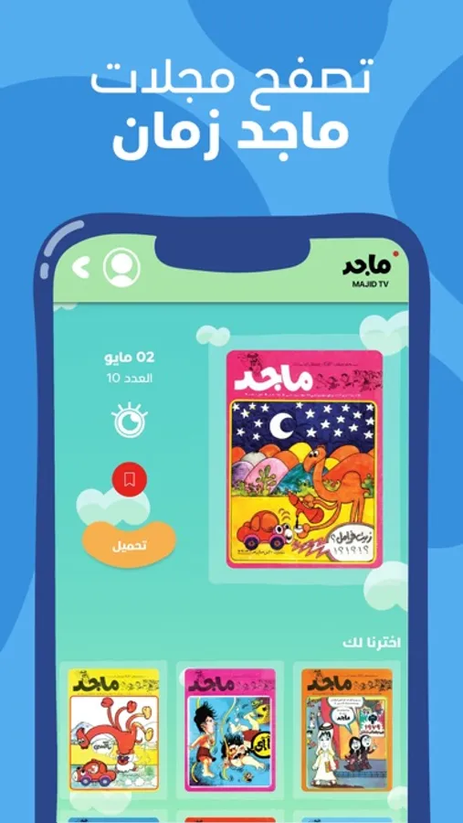 مع تطبيق ماجد، لن تشعر بالوقت وهو يُمر. حمّل التطبيق واستكمل المغامرة مع شخصياتك المفضلة وهي تخوض أروع المغامرات الحماسية والمواقف الكوميدية والأحداث المسلية عبر مسلسلات وأفلام وبرامج حصرية باللغة العربية وبالدبلجة الإنجليزية.