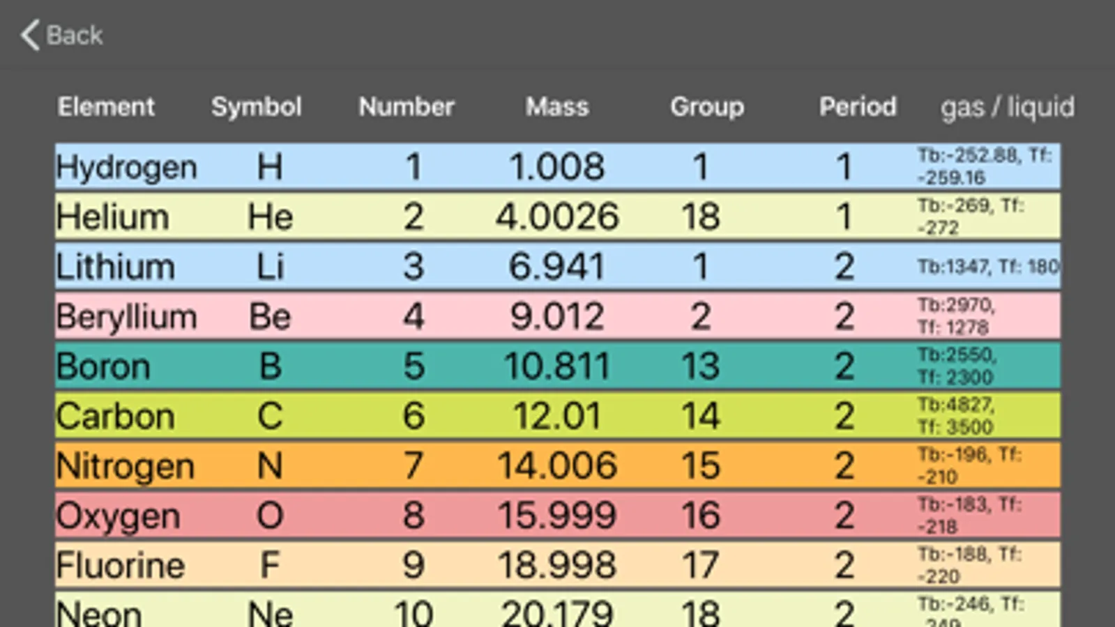 The DFB Period Table is an educational app for iPhone and iPad, perfect for students from grade school through high school. Explore the elements with this introduction to the periodic table's blocks, groups, periods and families. The app presents basic information about the atom, its nucleus, electron shell and the ways in which elements bond together. All iOS devices, iOS 11.4 and above, landscape only.