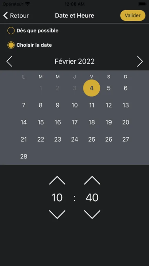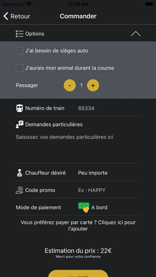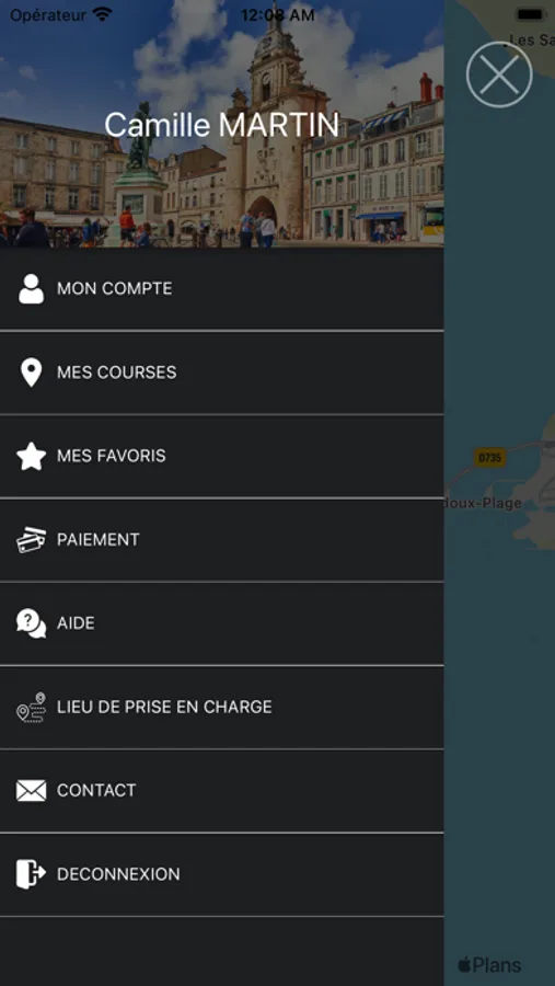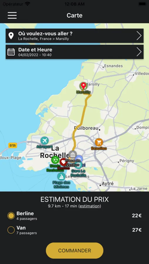 - Ouvrez l’appli connectez-vous, indiquez votre lieu de prise en charge et votre destination