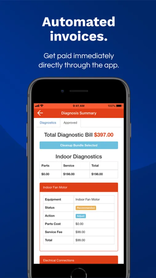 Once your diagnostic is complete, fyxify PRO does the rest. Your quote pops up on the homeowner’s smart device. The quote is broken down for them in three, easy to understand categories: 1) Required repairs, 2) Recommended repairs, and 3) Maintenance needs. No pressure on you or the homeowner. If they have a question, they can even direct message you through the app.
