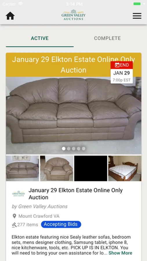 Green Valley’s mobile app allows you to 1) get current information on all of our upcoming auctions, 2) bid from your phone on any of our online auctions-including notifications when you are outbid, 3) be the first to see new pieces posted in our online consignment shop, plus more.