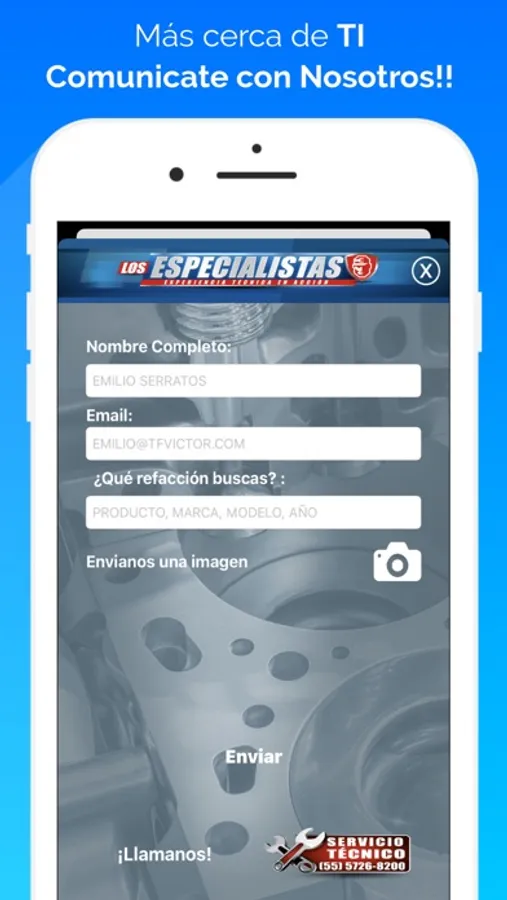 Contacto directo con el área servicio técnico telefónico por medio de correo y llamada telefónica y WhatsApp.