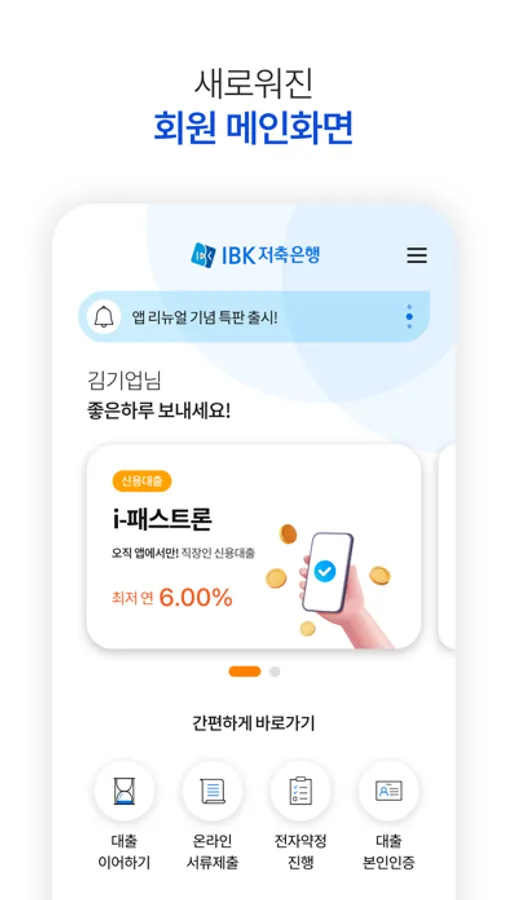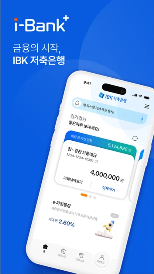 IBK저축은행의 새로운 모바일 앱 i-Bank입니다.