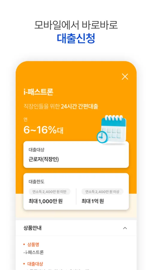 ※ i-Bank앱 전용 상품으로 해당 금리는 햇살론(근로자)대비 1.0%p우대