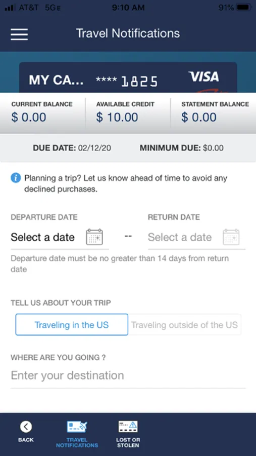 • Set travel notifications.