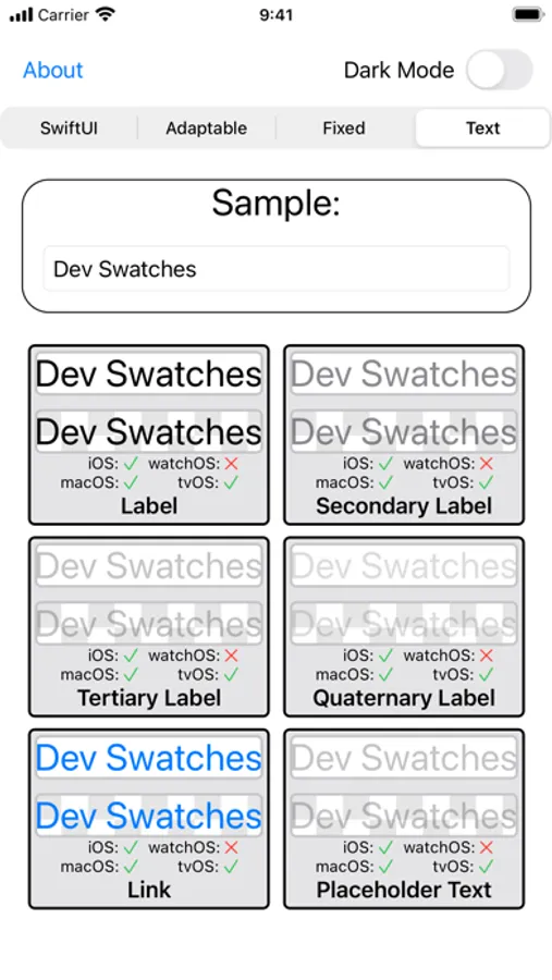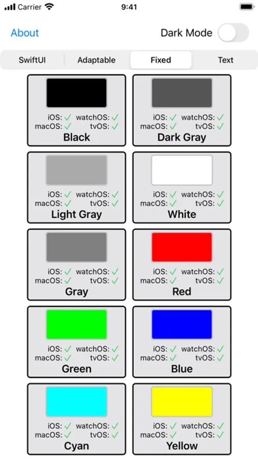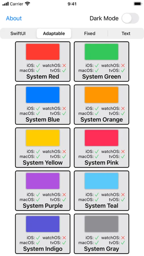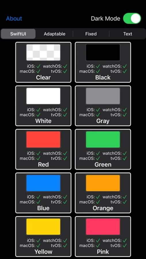 • See all of the colors provided by SwiftUI and UIKit in a single place.