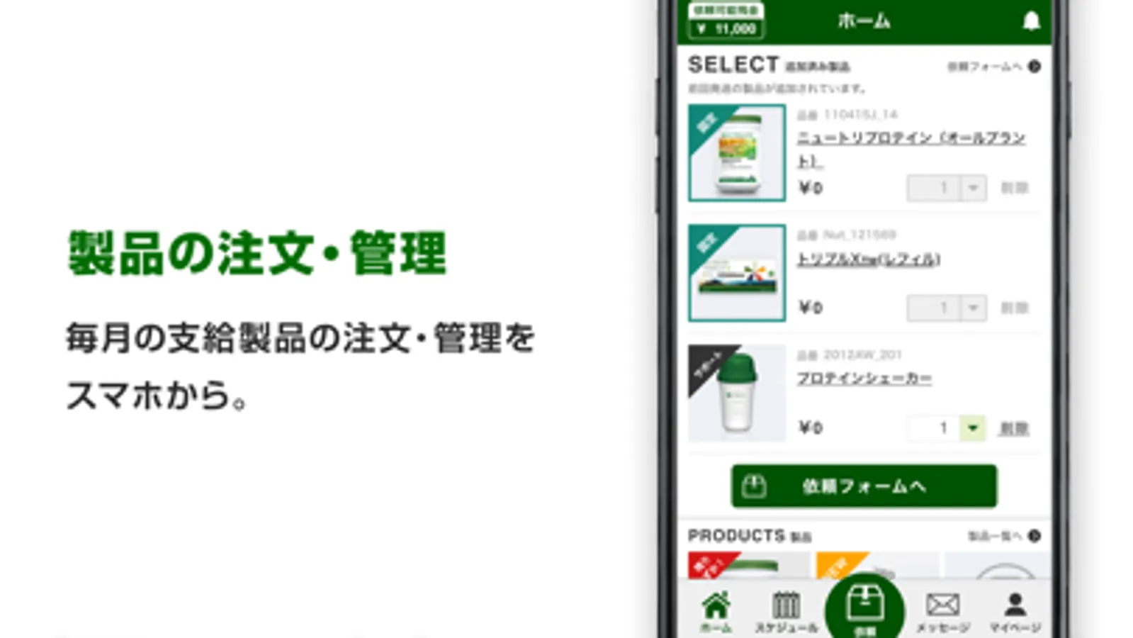 ■毎月の製品サポートの注文・配達依頼