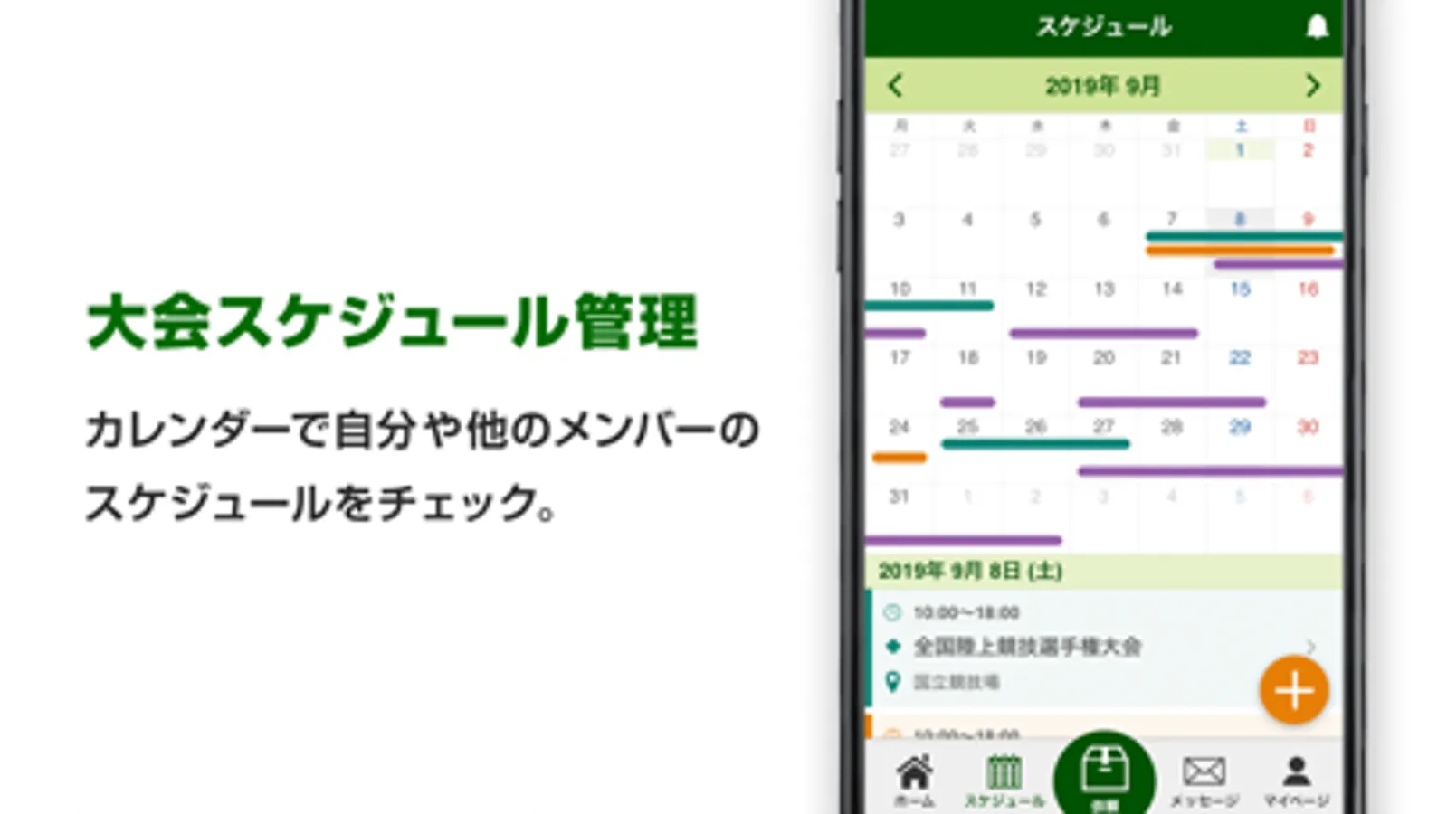 ・カレンダーを使って、自分の出る試合のスケジュールを登録することができます。