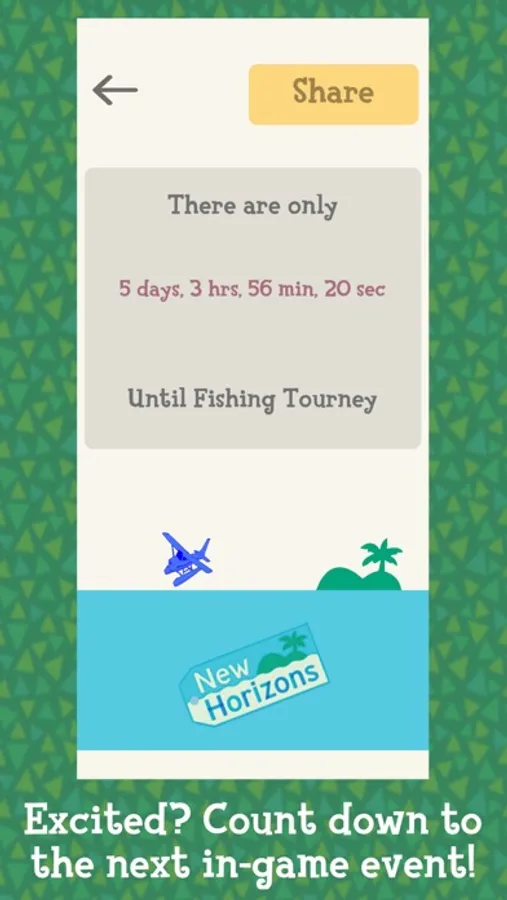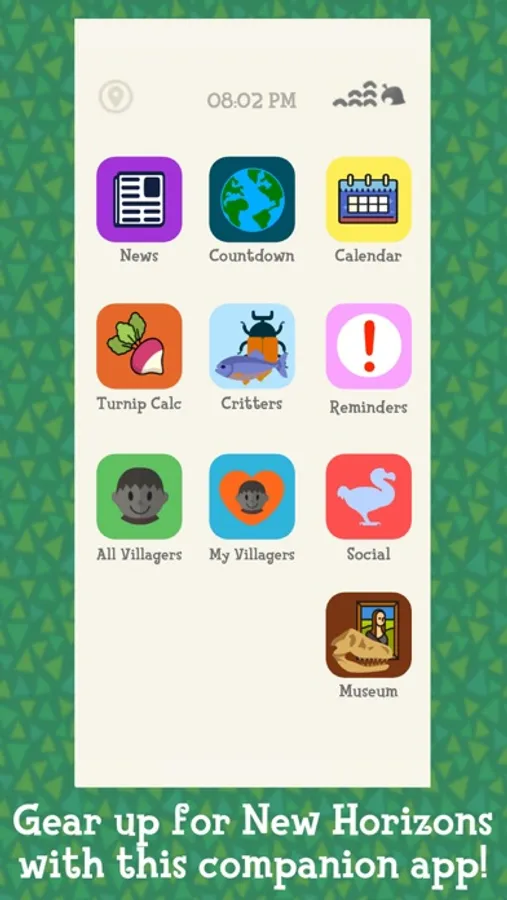 Excited for the release of AC New Horizons? Want a companion app to get ready for the game? Here's one to keep in your pocket! Use "Companion for AC New Horizons" to keep up on the latest news on the new game. You can also find a countdown for events, detailed information on bugs, fish, villagers, and even recipes.