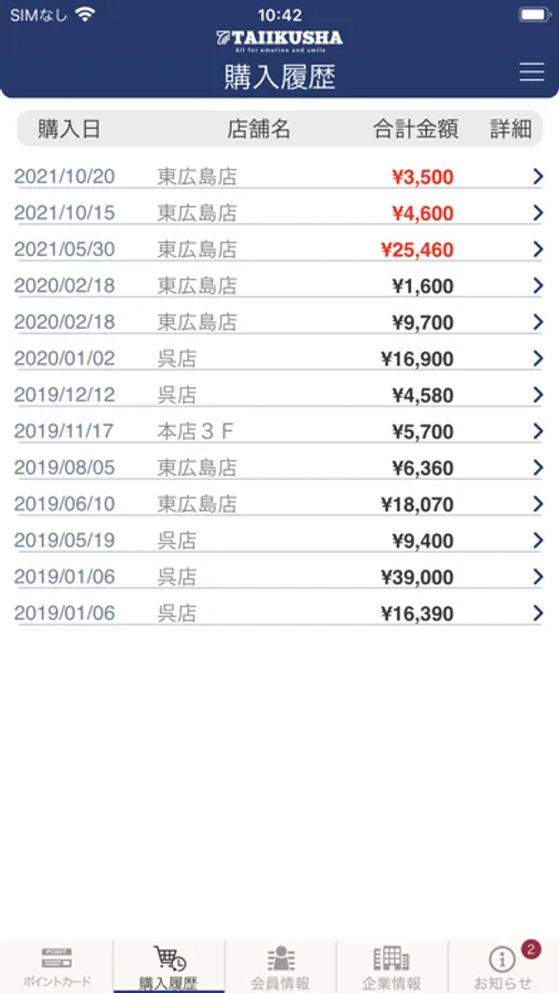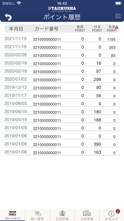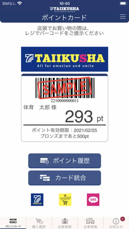 現在の保有ポイント、会員ランクを確認することが出来ます。