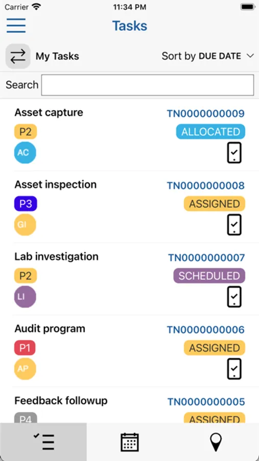 Inspections, maintenance, product faults, serious high priority incidents can all be sorted/ordered/ filtered.