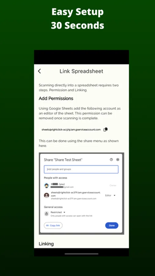QR Sidekick allows you to quickly and easily scan QR codes and barcodes to your Google Sheets. Direct hooks keep your sheets private and you can choose from a list of your sheets.