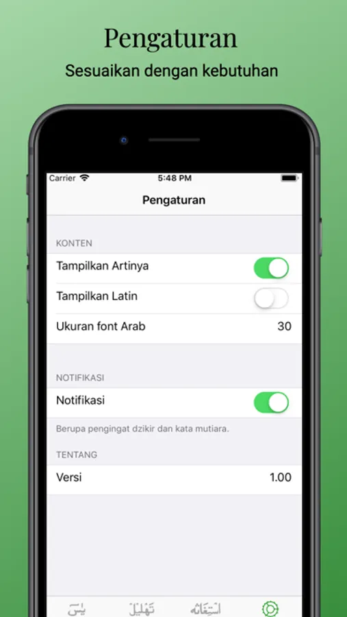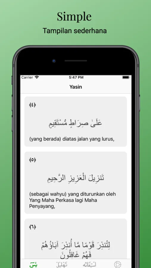 Aplikasi ini memiliki tampilan yang sederhana. Font Arab juga bisa diatur ukurannya dan jenisnya sehingga membantu untuk memudahkan ketika membacanya.