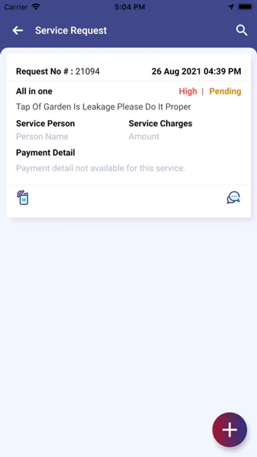 • Service Request- Request personnel for any services like Plumbing, Electrician, etc.