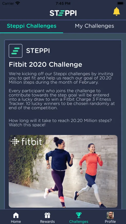 If you choose Fitbit for tracking, STEPPI integrates with Fitbit APIs to track your steps, distance and calories.