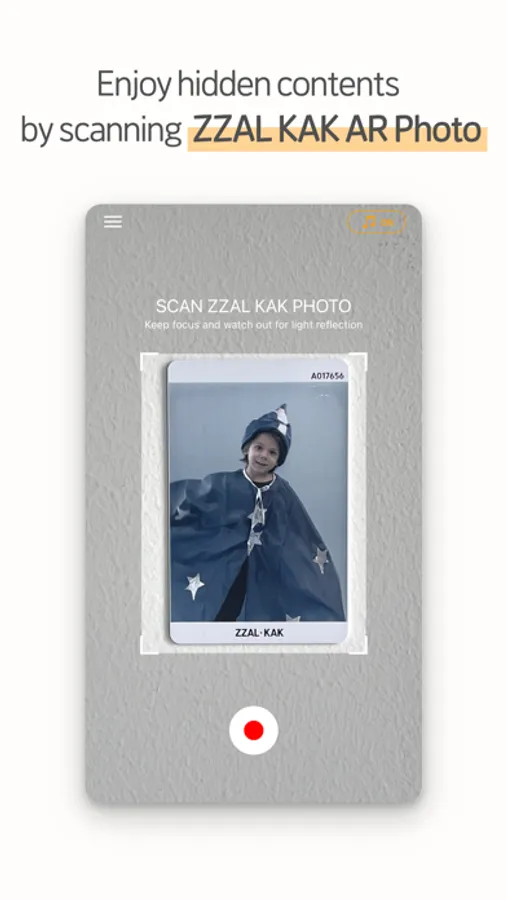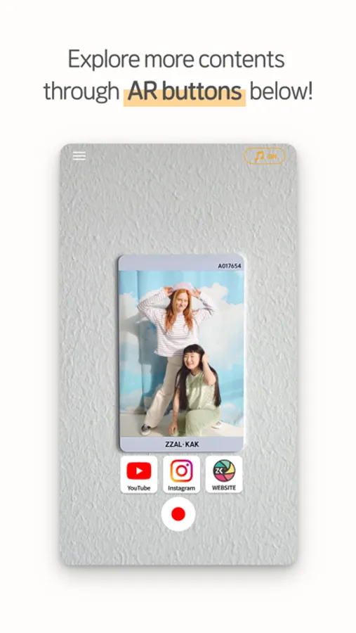 Take a photo on ZZAL KAK AR Photo Booth, and enjoy hidden videos by scanning in the ZZAL KAK app!