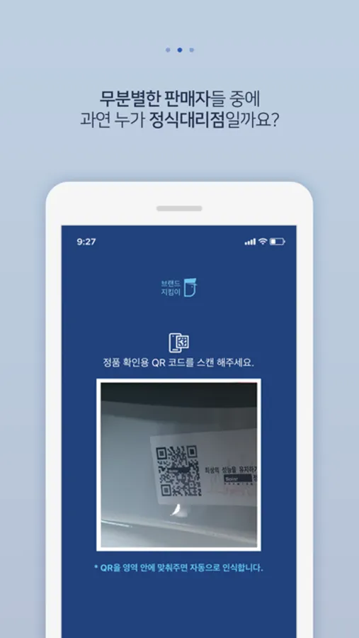 브랜드지킴이 앱을 통하여 정식대리점으로 확인되는 판매자에게 물품을 구입하여
