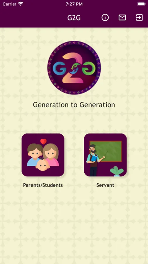 G2G is an application that is made to improve the Sunday school system through creating a strong connection between the Sunday school servants, Sunday school students and the parents.