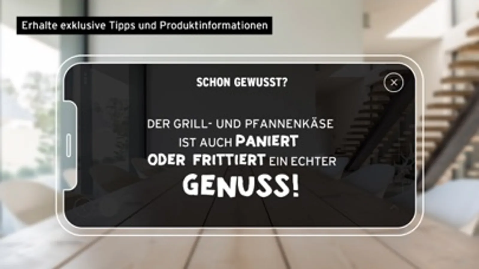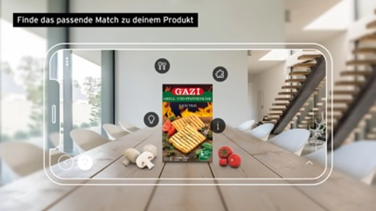 Zusätzlich lässt sich die App auf GAZi-Rezeptkarten, Postern und weiteren Printprodukten anwenden, die mit Augmented Reality gekoppelt sind. Um den erweiterten Video-Inhalt zu nutzen, hälst du deine Kamera des Smartphones oder Tablets mit genügend Abstand und ausreichend Beleuchtung über das mit dem AR-Marker gekennzeichnete Motiv.