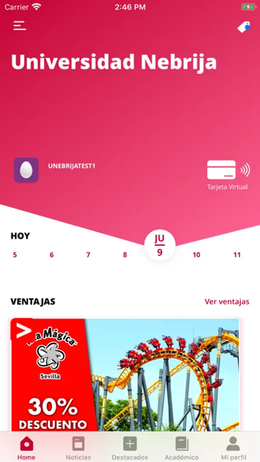 • Perfil privado: Todos tus datos personalizados según tu perfil universitario. Consulta tus asignaturas, calificaciones, etc. Y también tu tarjeta universitaria digital. ¡Siempre la llevarás contigo!