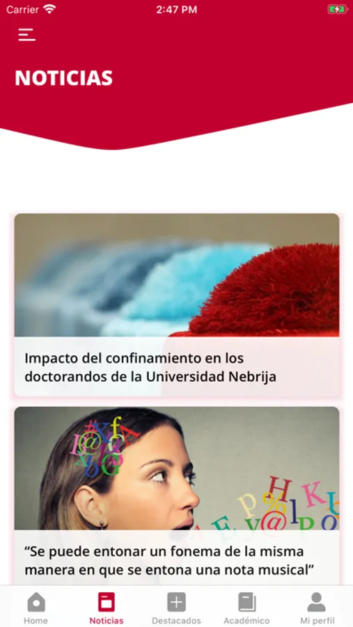 • Información de la universidad: Consulta toda la información sobre la Universidad Nebrija (eventos, noticias, oferta educativa, accesos…).