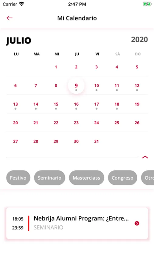 • Calendario universitario: Desde la app podrás acceder a tu calendario académico y conocer todos los eventos de la universidad.