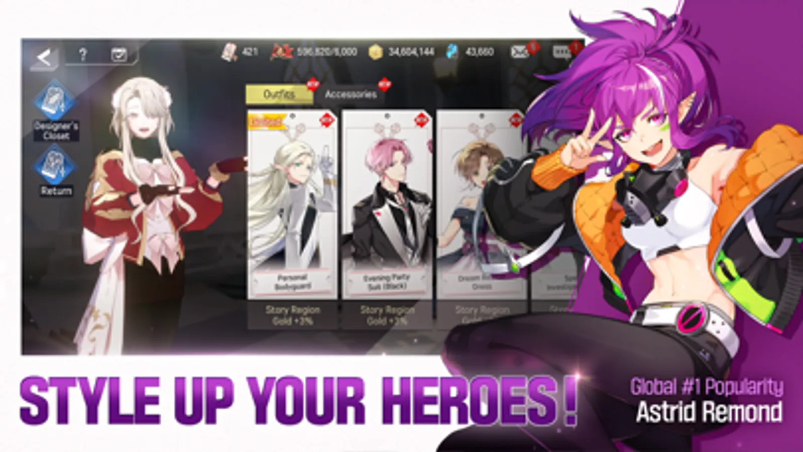 As the Lord of Avillon, you'll embark on a gripping journey filled with trials, triumphs, reunions, and farewells. Explore the human experience through themes of sacrifice, loyalty, and the weight of leadership. Traverse various chapters of the main story, uncovering the intricacies of this mystical world. Delve into the past of your heroes during the War of the Tyrants story, and embark on new adventures with Side Stories in the ultimate RPG experience.