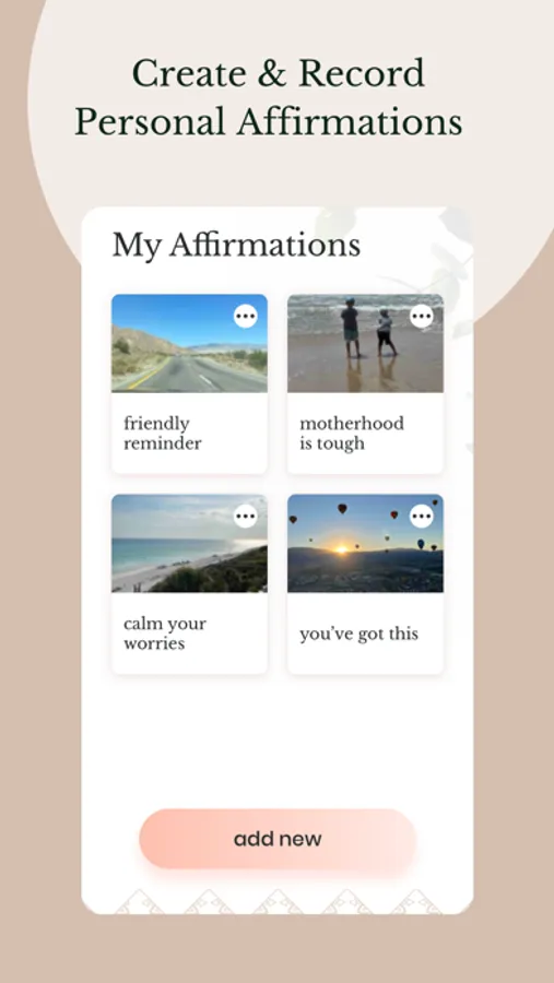 - Affirmations: simple mantras to help you master your mindset. Create & record your own mantras