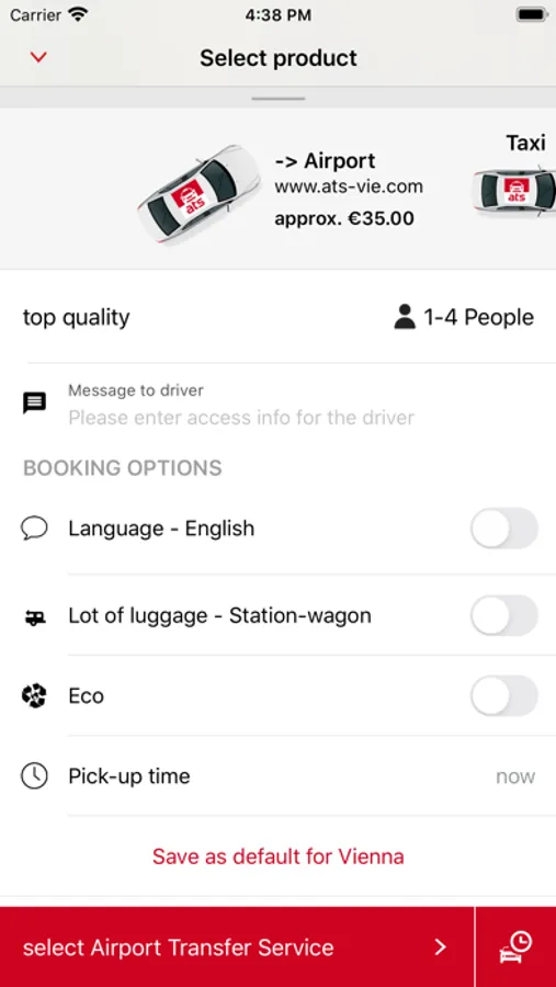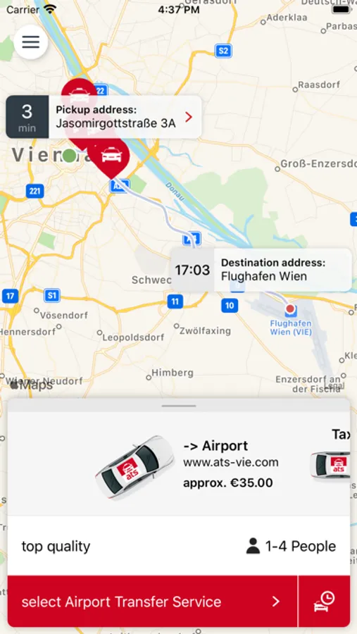 ATS – AIRPORT TRANSFER SERVICE ist taxi.eu Partner. Sie können bequem mit dieser App europaweit in vielen Ländern ein Taxi bestellen.
