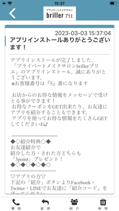 ブリエのアプリをSNSを通じてお友達に紹介する事ができます。