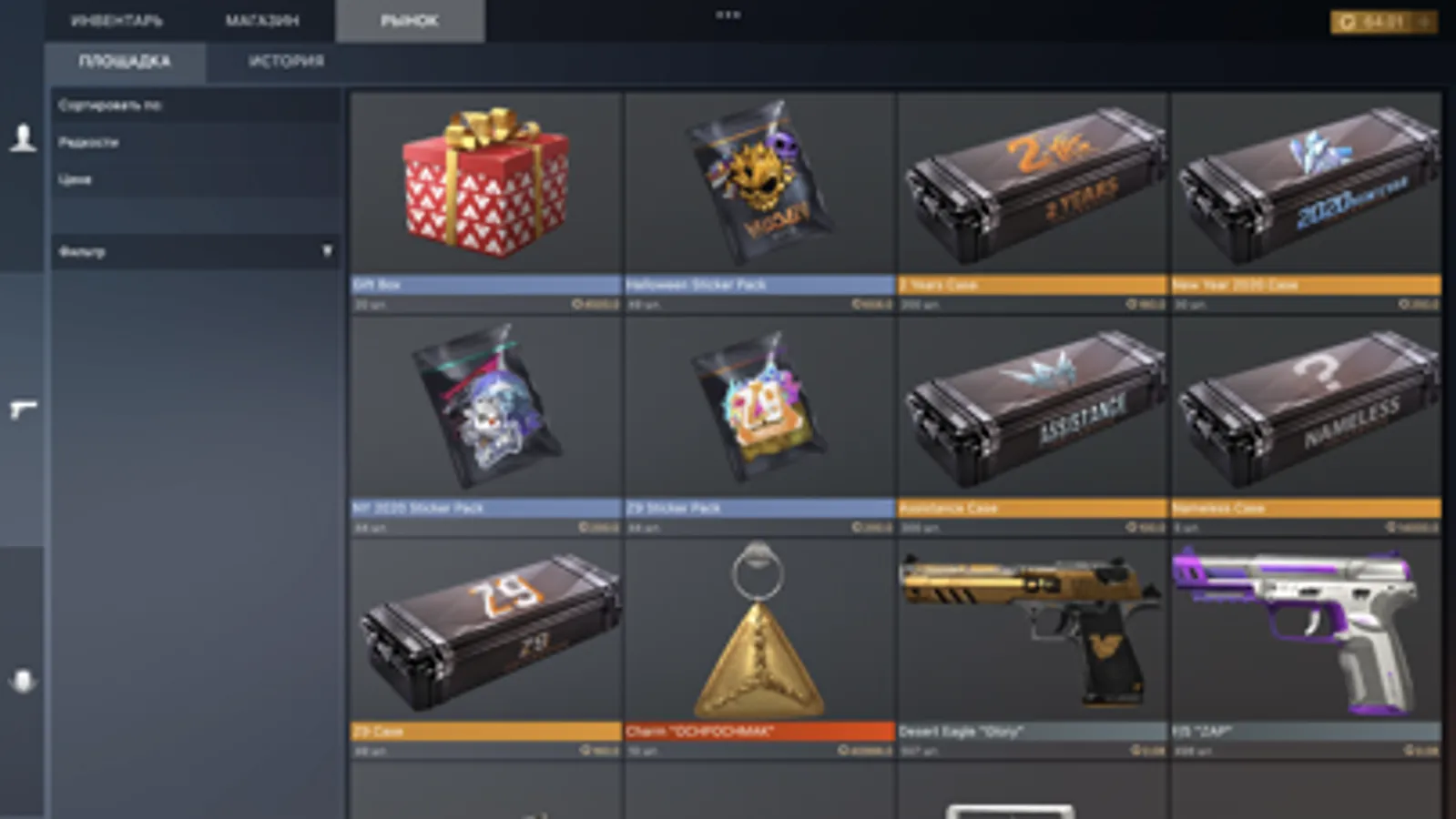 In our simulator, you will find almost all collections from Standoff 2 cases. Explore the market where you can search for skins by various parameters and purchase cases from old collections, sticker packs, charms, and keychains.