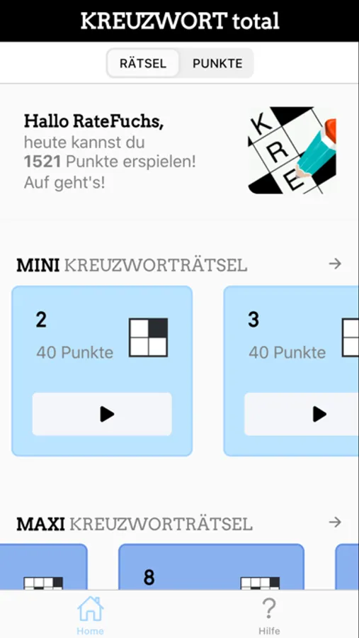 - Klassische Kreuzworträtselspiele im Maxi- und Mini-Format.