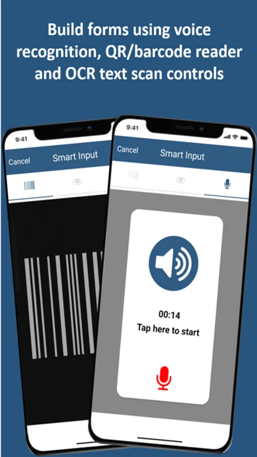 - Take pictures, recognize text voice and QRBar-code, geo-localize data input and receive workflow notifications