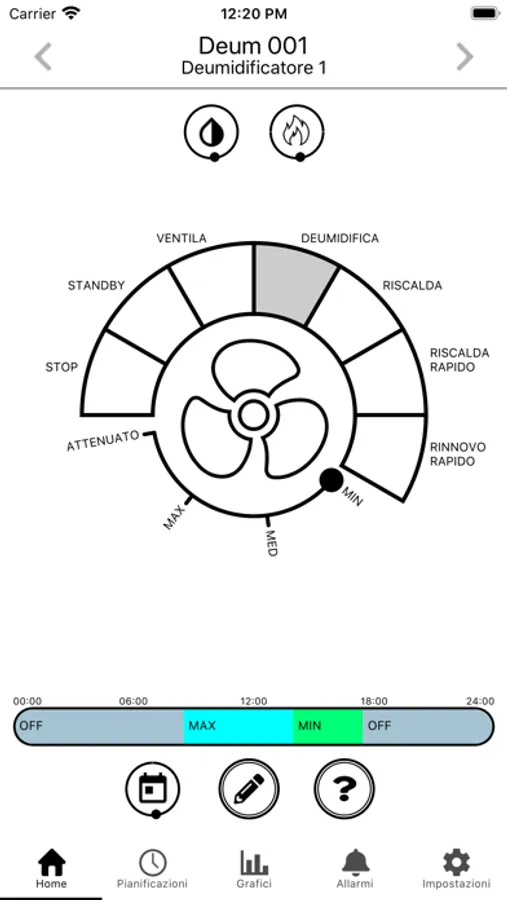 Permette di pianificare gli orari di funzionamento dell’impianto in maniera differenziata giornalmente o settimanalmente.
