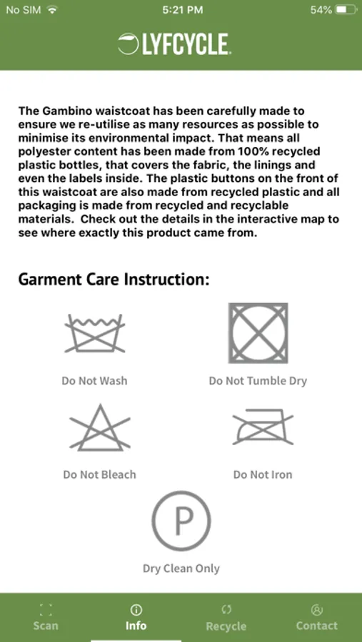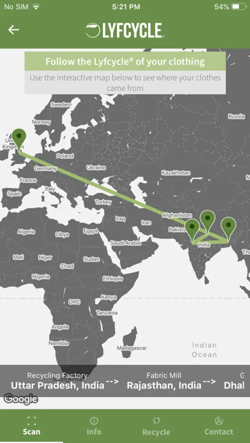 Lyfcycle® collaborates with high street and online fashion retailers to manufacture sustainable clothing. In line with our vision for sustainable fashion to be accessible and affordable to everyone, we have developed this app to encourage transparency in the clothing industry. If you've got your hands on one of our pieces of clothing, just scan the QR code on the label with this app to follow the Lyfcycle® yourself. You'll be able to see what makes up your clothes, what makes them sustainable and where they came from - from fibre to factory and ultimately, to the retailer you got them from.